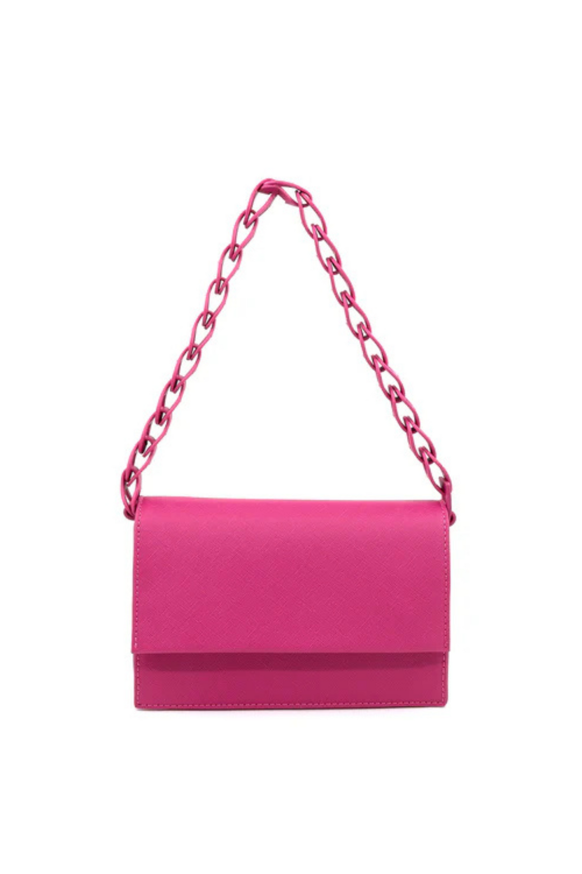 This fabric chain handbag features a hard sided design for added durability. With two large inside pockets and one small pocket, this bag offers ample storage space for your essentials. Plus, its two clasps ensure your belongings stay secure. 9 x 6 inches