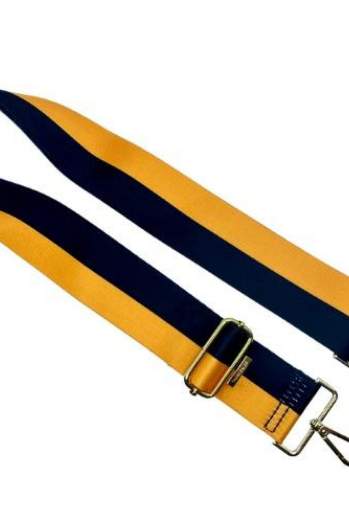 Get ready to rock any outfit with our striped Guitar Strap. Show off your school spirit in style with this customizable strap that pairs perfectly with any of our crossbody or belt bags. It's the perfect accessory for Back to School season and makes a great holiday gift for any music lover. Made with durable woven nylon material and gold hardware, this 2" wide strap is adjustable to fit all sizes. (Handbag not included)
