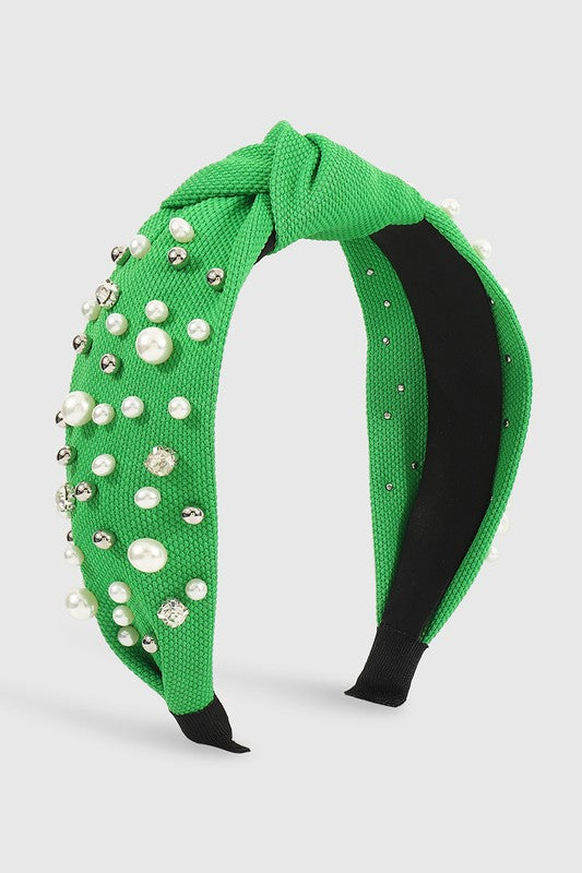 Fabric, rhinestone and faux pearl headband. Size: 7.08" x 4.72" Wider Coverage 2.55"