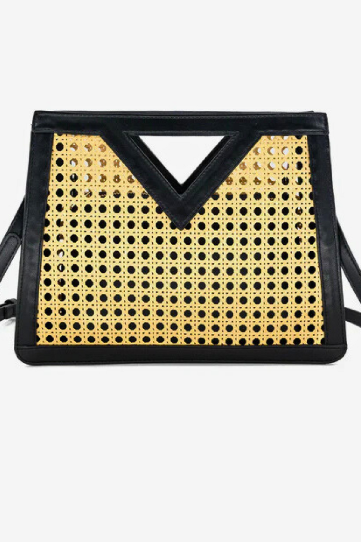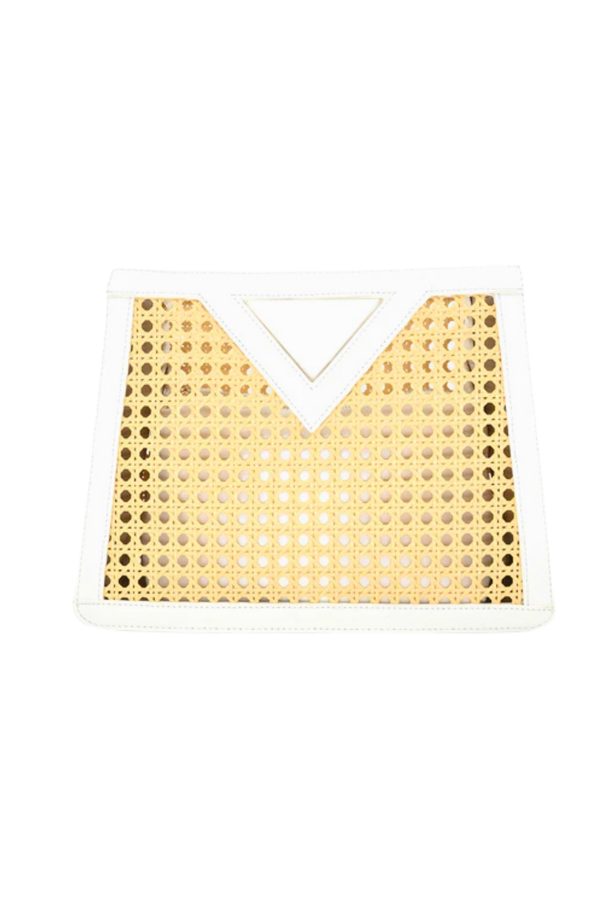 Elevate your style with the Tara Clutch. The rattan and faux leather trim exude sophisticated. Large removable pouch included. Cross body strap can be added (not included). Perfect for a night out or a day at the beach. 13x3.5x10 inches.