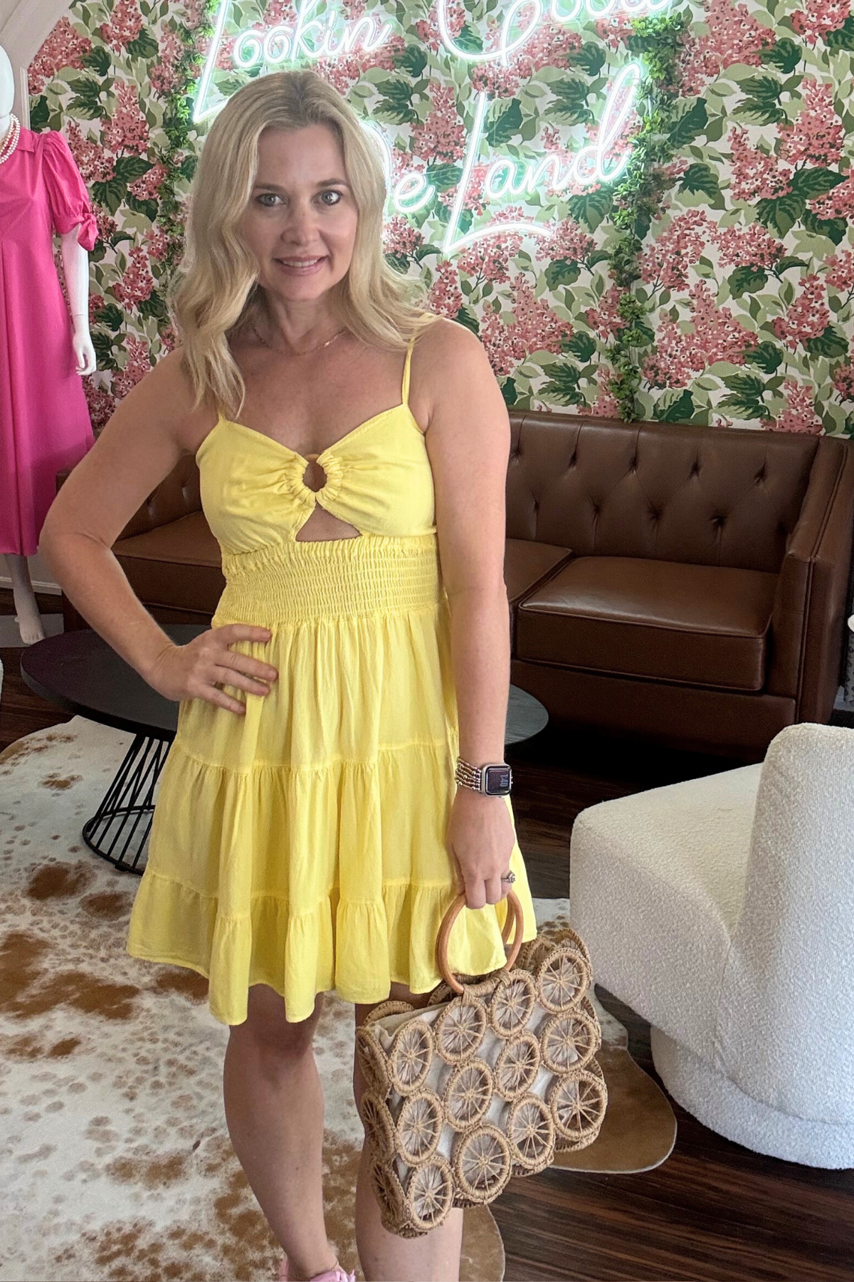 Indulge in luxury with our Kattia Mini Dress. This stunning mini style features a delicate ring at the center bust, adjustable straps for the perfect fit, and intricate cutout and ruched details on the skirt. Model is wearing size medium. 100% Cotton.
