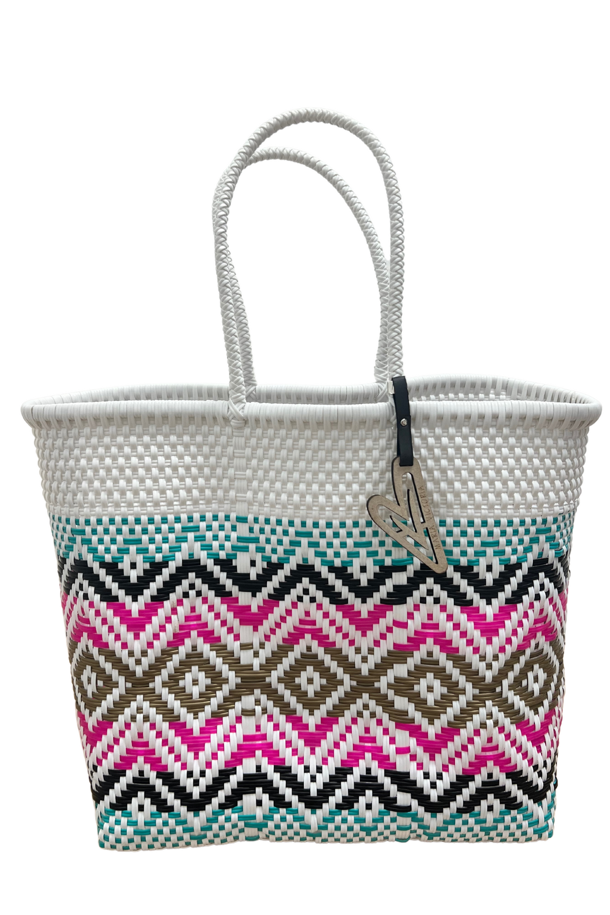 The perfect beach bag! Lightweight and easy to clean making it perfect for the beach, pool or boat. All bags are handmade so size may vary slightly.