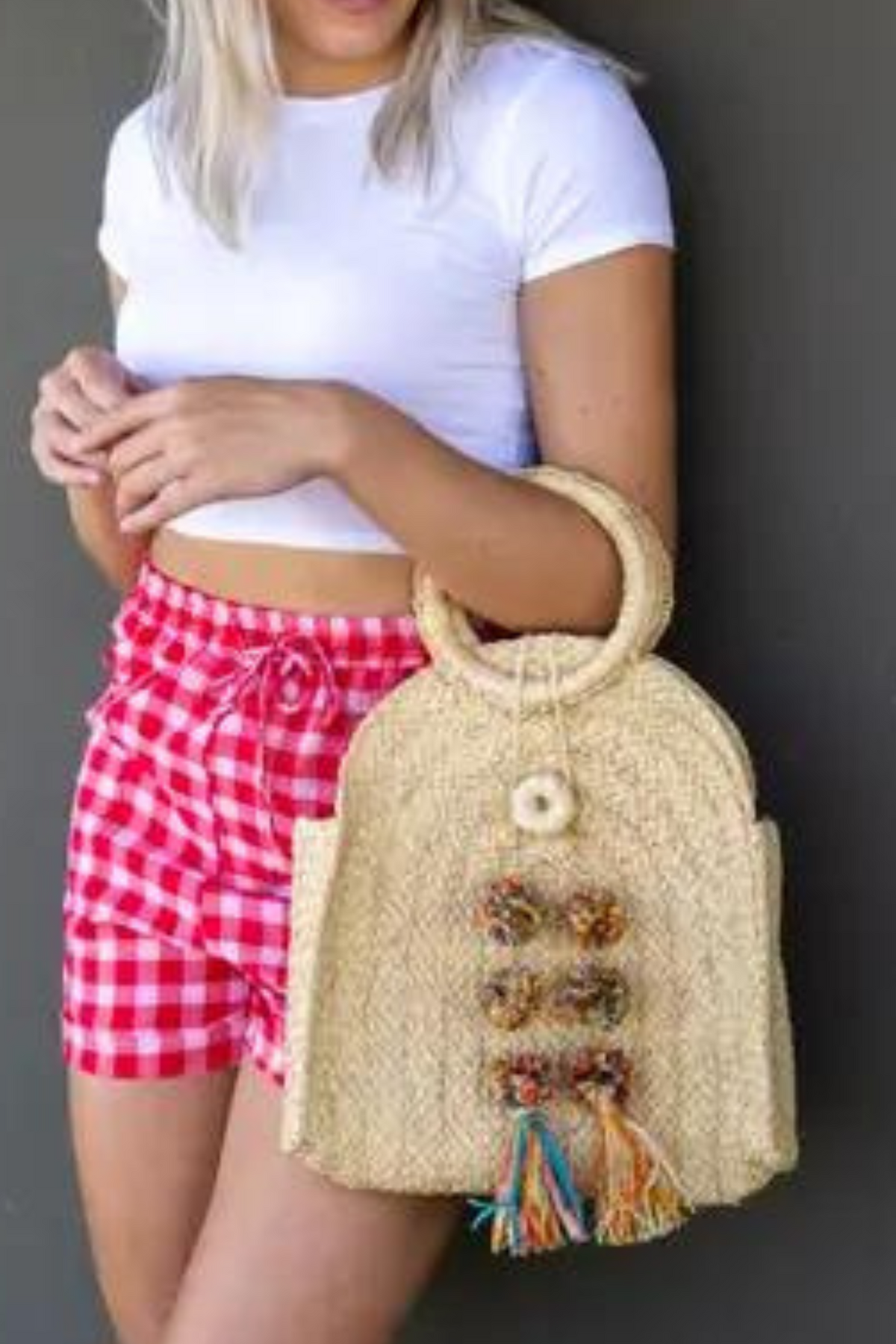 Mission Braided Straw Handbag with Waterfall Pompom Tassel