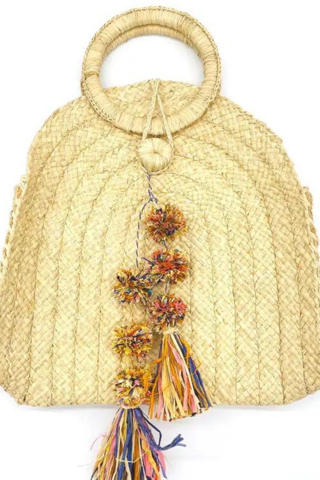 Mission Braided Straw Handbag with Waterfall Pompom Tassel