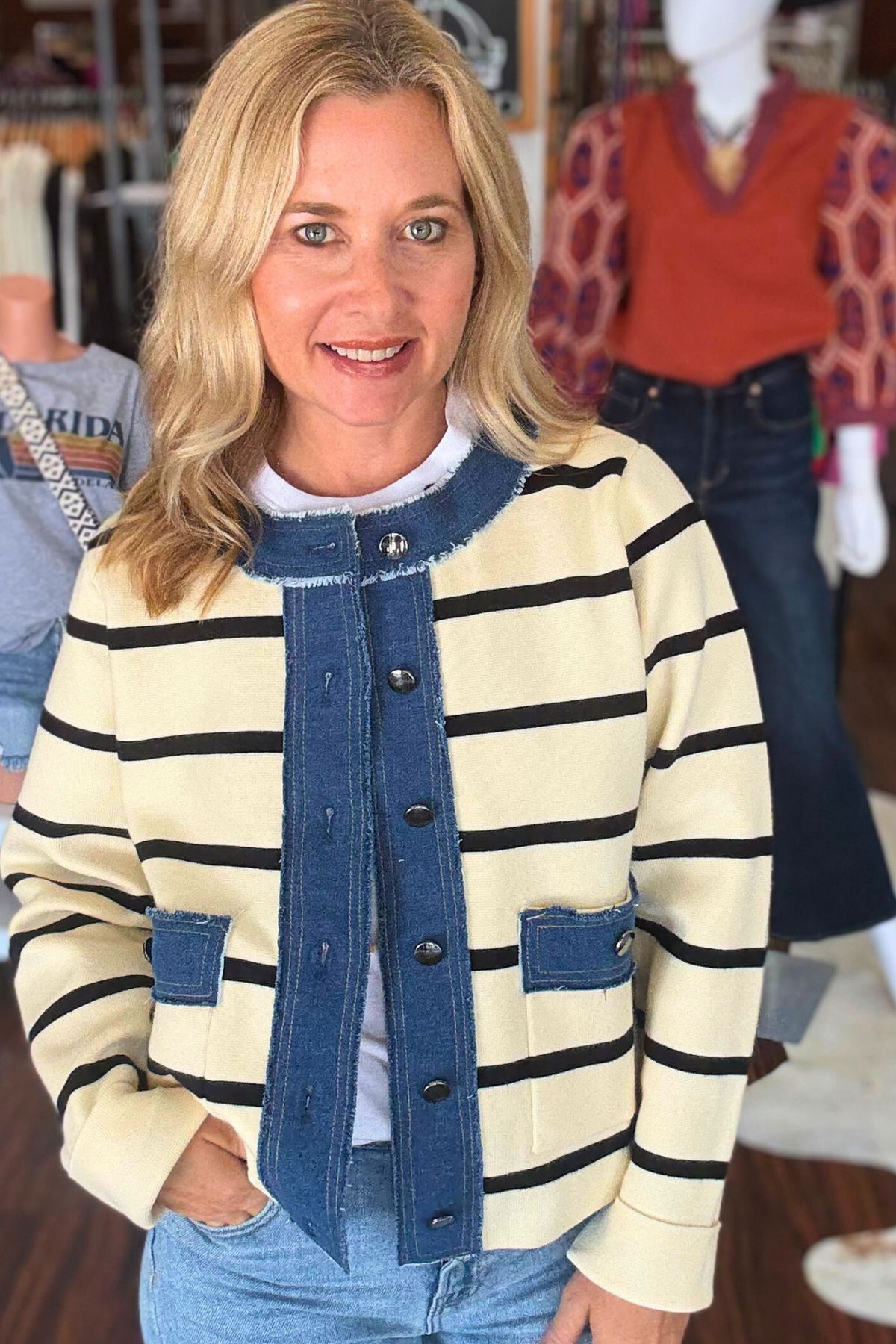 Striped Jacket with Denim Contrast